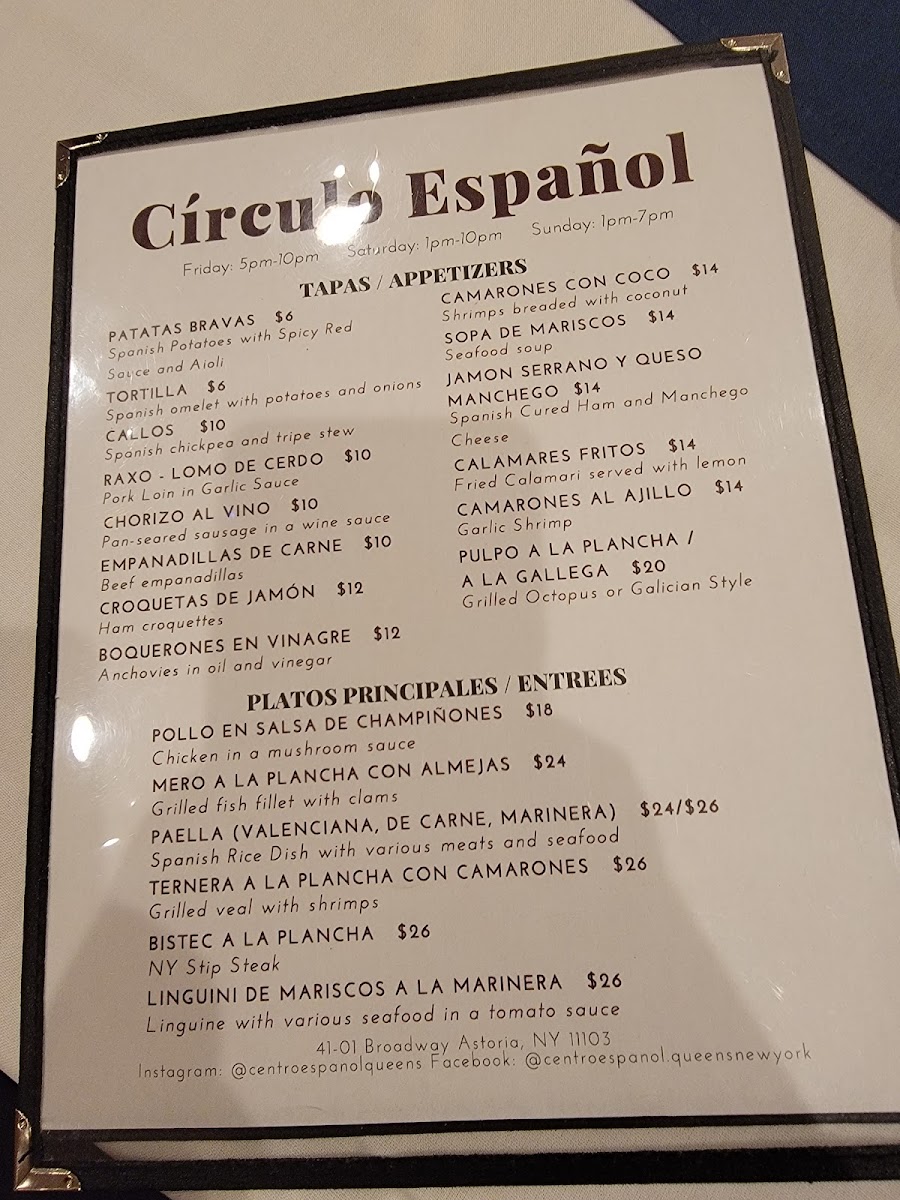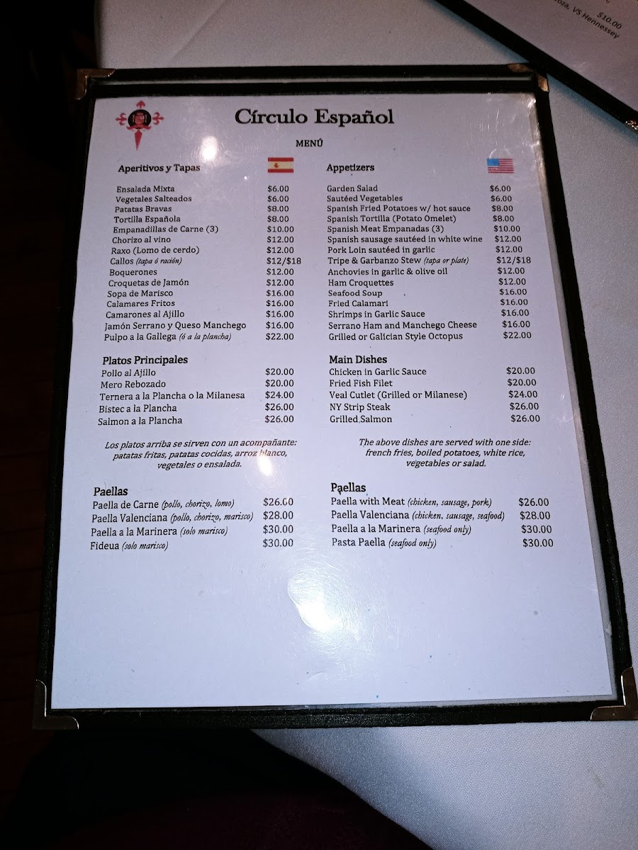 The menu at Circulo Español offers a thoughtful selection of traditional Spanish dishes, designed for relaxed dining that fits both casual outings and special occasions. You’ll find a variety of tapas—small plates ideal for sharing over conversation—and heartier entrees that bring comforting flavors to the table.